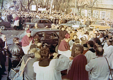 | Фотафакт 1989 года — чаканы «ўваход» біскупа на беларускую зямлю |