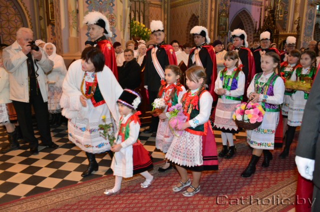 Прыехаўшы на Імшу да старажытнай Малой базылікі Найсвяцейшай Тройцы ў Мышынцы, арцыбіскупы і біскупы мелі магчымасць далучыцца да мясцовага насельніцтва, атрымаць сведчанне веры жывога Касцёла. Святую Імшу ўзначаліў біскуп Ломжынскі Януш Стэпноўскі. Гамілію прамовіў Мітрапаліт Мінска- Магілёўскі арцыбіскуп Тадэвуш Кандрусевіч, які спасылаўся на літургію слова, якая была ў той дзень. «Сучасны чалавек адчувае штораз большы духоўны голад, які можа наталіць толькі Хрыстус. Гэты голад можа быць заспакоены, калі мы хочам жыць збалансаваным жыццём і ў супакоі з самім сабою, Богам і іншымі. Езус ахвяруе хлеб, які заспакойвае гэты голад. Ён можа заспакоіць наймацнейшы голад і пагасіць прагненне нашага сэрца. Таму нашыя намаганні павінны быць накіраваныя да Яго і не могуць спыніцца ці быць задаволенымі чымсьці іншым», — сказаў арцыбіскуп Кандрусевіч. Кажучы пра актуальную сітуацыю ў Еўропе, асабліва ў Еўрапейскім Саюзе, членамі якога з’яўляюцца і Польшча, Літва і Латвія, іерарх адзначыў, што «мы ўражаныя ліберальнымі тэндэнцыямі, якія пануюць у ЕС». «Заканадаўства ЕС замест таго, каб вырашыць крызіс сям’і, павялічвае яго. Сёння заканадаўцы прымаюць законы, якія пагражаюць самім Богам створанаму інстытуту сям’і, як адзінаму і непадзельнаму саюзу мужчыны і жанчыны. Замест гэтага падтрымліваюцца гомасексуальныя саюзы і яшчэ з правам усынаўлення дзяцей», — дадаў іерарх. Падводзячы вынікі, у сваёй гаміліі арцыбіскуп Кандрусевіч задаў фундаментальнае пытанне: «Куды ты ідзеш, Еўропа?» Напрыканцы Імшы слова сярод іншых меў біскуп Элцкі Ежы Мазур SVD, старшыня Згуртавання, які на працягу многіх гадоў служыў у Баранавічах. Біскуп Мазур патлумачыў, на чым засноўваецца ініцыятыва гэтых сустрэч, якія адбываюцца два разы ў год у розных краінах і з’яўляюцца добрай нагодай да лепшага пазнання становішча Касцёла ў той ці іншай краіне, знаёмства з душпастырскай практыкай і проста ўзаемнага ўзбагачэння. Як адзначыў біскуп, пакліканне гэтага Згуртавання было адказам на патрэбы часу — дзеля абмену душпастырскім вопытам і пашырэння кантактаў паміж гэтымі народамі. «Жыццё паказала, што Згуртаванне патрэбнае і здае экзамен», — дадаў іерарх.