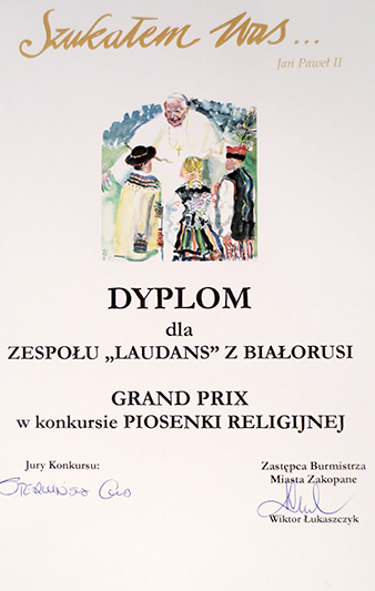 Хрысціянскі гурт «Laudans» прыняў удзел у X Фестывалі хрысціянскай творчасці «Я шукаў вас» у Польшчы, з якога на радзіму вярнуўся з пачэснай узнагародай — гран-пры. Фестываль праходзіў у Закапанэ 22-23 мая і быў прысвечаны святому Яну Паўлу ІІ.
