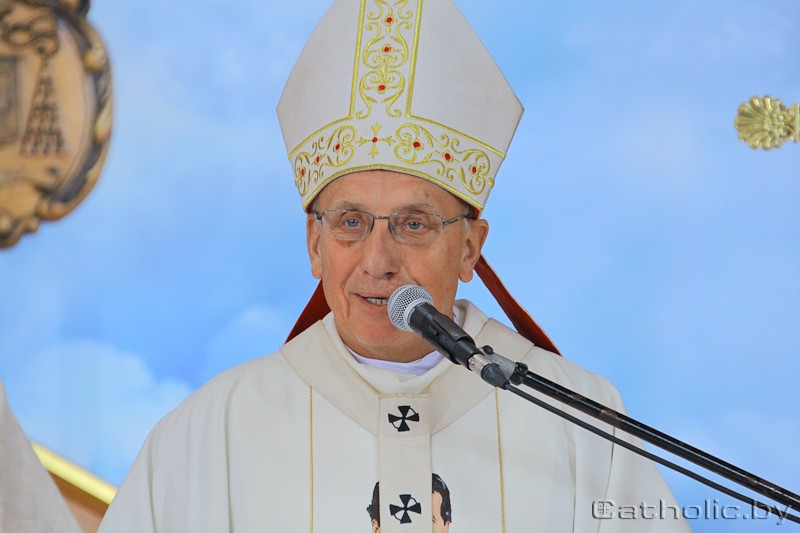 «Святы Ян Боско — рэвалюцыянер у галіне выхавання моладзі» Мітрапаліт нагадаў у сваёй гаміліі пра этапы святкавання Юбілею 200-годдзя нараджэння св. Яна Боско. Першым з іх, паводле слоў іерарха, стала перэгрынацыя рэліквій гэтага святога па святынях нашай краіны ў жніўні 2013 г., калі апякун і выхаваўца моладзі ў сваіх рэліквіях наведаў Беларусь, як адну з 130 краін, якія далучыліся да сусветнай перэгрынацыі яго рэліквій. Падчас перэгрынацыі, нагадаў Мітрапаліт, было абвешчана аб стварэнні Беларускай дэлегатуры салезіянаў: «гэтым самым супольнасць салезіянаў у Беларусі атрымала свой кананічны статус, што стварае новыя магчымасці для яе развіцця». Другім этапам, як адзначыў арцыбіскуп, стала асвячэнне араторыя св. Дамініка Савіё 20 верасня 2014 г. у Бараўлянах. Трэцім этапам — літургічная ўрачыстасць св. Яна Боско, якая адбылася 1 лютага 2015 г. у Смаргоні; чацвёртым — урачыстасць Маці Божай Успамогі Хрысціянаў у Дзятлаве 23 мая 2015 г. (святы быў прыхільнікам Маці Божай). Пятым этапам стаў Дзень адзінства салезіян у калысцы салезіянскай харызмы ў пасляваеннай Беларусі — в. Жупраны. Ён адбыўся 20 чэрвеня 2015 г. і быў прысвечаны разважанням аб Слузе Божай Маргарыце Ок’ена — маці і настаўніцы св. Яна Боско, першым супрацоўніку ля вытокаў Салезіянскай сям’і.
