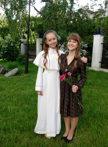 На фота Вольга разам з адной са сваіх вучаніц падчас яе першай Камуніі