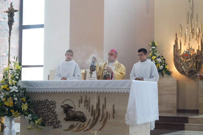 Урачыстую святую Імшу ўзначаліў біскуп Гродзенскі Аляксандр Кашкевіч, молячыся падчас яе за ўсе сем’i нашай краiны. Таксама іерарх маліўся аб тым, каб, як адзначыў, «паклiканнем кожнай сям’i была чыстая любоў, аб якой прыгожа піcаў святы Павел i якая нiколi не мiнае, не зайздросцiць, не шукае свайго, не гневаецца i не памятае зла».