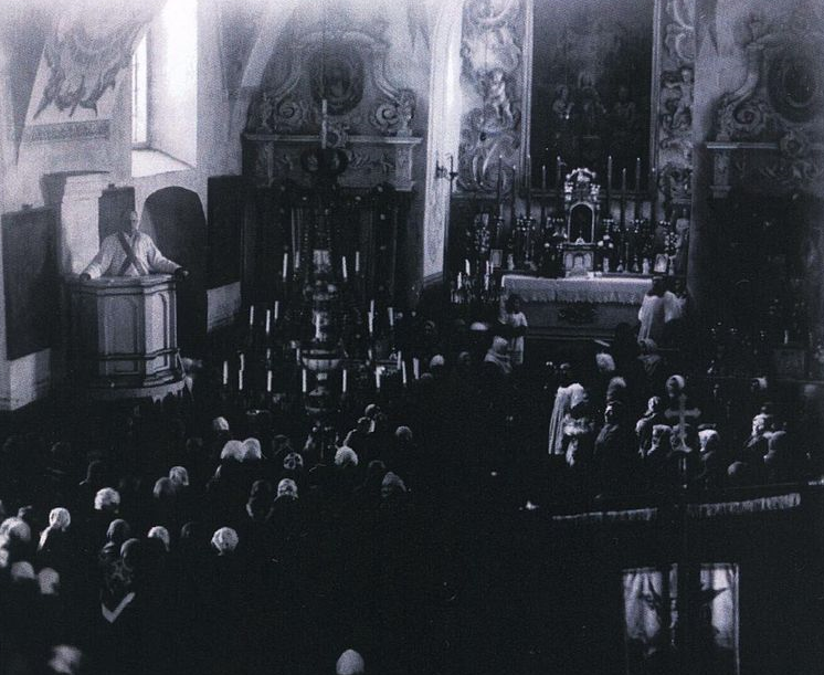 Ксёндз Гадлеўскі прамаўляе гамілію ў касцёле. Пра тое, у якіх умовах прыходзілася дзейнічаць ксяндзу Гадлеўскаму і іншым беларускім святарам, сведчаць успаміны іншага беларускага нацыянальнага і каталіцкага дзеяча Язэпа Малецкага: «Ксёндз Гадлеўскі дастаў жорсткую вымову ад немцаў, і яму забаранілі казаць казанні, на якія заўсёды схадзіліся грамады людзей. Застаўся толькі адзін ксёндз Ігнатавічус, які набажэнства адпраўляў па-лацінску і чытаў толькі Святое Евангелле па-беларуску, народ жа ў час набажэнства спяваў беларускія рэлігійныя песні. Перад заканчэннем вайны немцы далі дазвол на пераезд у Мінск ксяндзу В. Шутовічу, які на сваім становішчы святара для беларусаў-католікаў сустрэў у Мінску і бальшавікоў. Яны ў хуткім часе яго арыштавалі, мучылі, саслалі на 10 гадоў катаргі. Выпушчаны, пасля прабываў у Вільні, памёр у Барысаве». Праз крытыку не толькі бальшавісцкай, але і нацыскай акупацыі Беларусі ксёндз Вінцэнт Гадлеўскі быў арыштаваны нямецкай Службай бяспекі ў ноч на 24 снежня 1942 года. Нацысты прапанавалі яму пакінуць Беларусь, але святар адмовіўся пакінуць свой народ і быў таемна забіты ў Трасцянцы. Пра дзейнасць зацятага патрыёта і хрысціяніна невядома яшчэ шмат — з ім звязваюць, напрыклад, заснаванне Беларускай Незалежніцкай Партыі, якая мела за мэту ваяваць падпольна, а потым і адкрыта адначасова супраць нацысцкага Рэйха і СССР. Шматлікія пытанні беларускай гісторыі змагання за волю пакуль застаюцца без адказу і патрабуюць сваіх даследчыкаў. Аднак бясспрэчна адно — усё жыццё адданага Богу і сваёй краіне святара сведчыць пра тое, наколькі глыбока ён разумеў свой святарскі абавязак. Беларусь шчаслівая мець такога сына, шанаваць памяць якога — наш агульны абавязак як хрысціянаў і беларусаў. Аляксандр Гелагаеў |