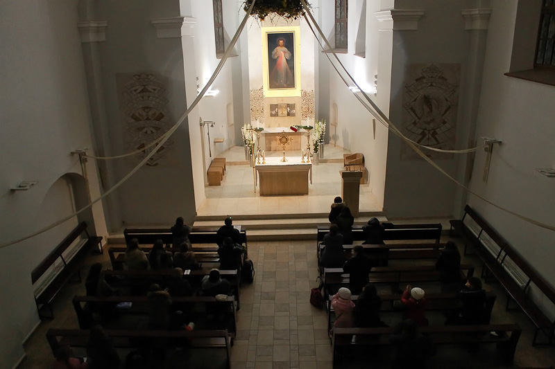 Пасля Ружанца пілігрымы скіраваліся на святую Імшу, якую цэлебраваў Мітрапаліт Тадэвуш Кандрусевіч, біскуп Гродзенскі Аляксандр Кашкевіч і святары з Беларусі. Самыя маладыя пілігрымы чыталі Божае Слова і спявалі псальмы. Магчыма, самым запамінальным момантам падчас пілігрымкі была адарацыя Найсвяцейшага Сакрамэнту ў капліцы Божай Міласэрнасці. Перад абразом Езуса Міласэрнага пілігрымы чыталі ўрыўкі з дзённіка св. сястры Фаўстыны Кавальскай, дзе яна піша пра тое, як Езус у сваіх аб’яўленнях сказаў ёй напісаць Яго абраз – сімвал Божай Міласэрнасці. Урыўкі чаргаваліся з кранальнымі лірычнымі спевамі. Пасля адарацыі пілігрымы памаліліся Вяночкам Божай Міласэрнасці.