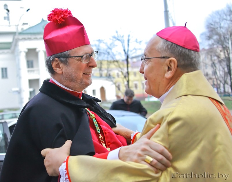 Гуджэроцці, які завяршае сваё служэнне Апостальскага Нунцыя ў Беларусі, актыўна сустракалі фота- і відэакамеры.