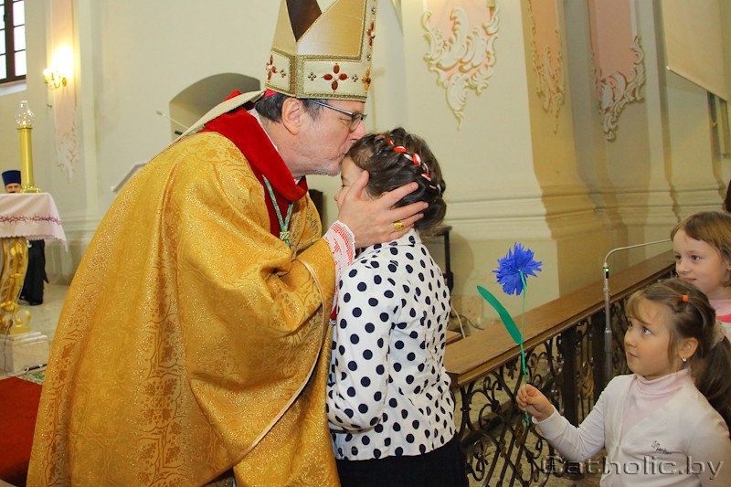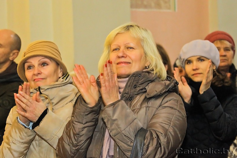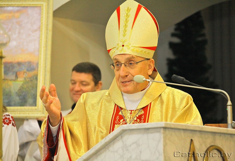 Звяртаючыся да свецкіх людзей, якія служаць Касцёлу, арцыбіскуп пажадаў, каб іх было яшчэ больш: «Бо Касцёл — гэта не ўласнасць ксяндзоў і манахаў, гэта ваш Касцёл. Гэта ваш Касцёл, калі вы моліцеся разам са святарамі. Гэта ваш Касцёл, калі вы пакліканыя служыць яму. Вы — рукі Хрыста. Фінансы Касцёла — гэта ваша адказнасць, а не адказнасць святароў. Вы павінны разам са святарамі займацца фінансамі ў Касцёле і дапамагаць святарам зразумець, што фінансы ў Касцёле належаць усім, як і міласэрнасць». Таксама Апостальскі Нунцый падзякаваў вернікам, якімі была запоўнена катэдра, і ўсім вернікам Беларусі, дадаўшы: «Вы захапляецеся прыгажосцю Касцёла. Пакажыце іншым, наколькі прыгожа быць веруючым чалавекам!» «Grazie babushkam!»