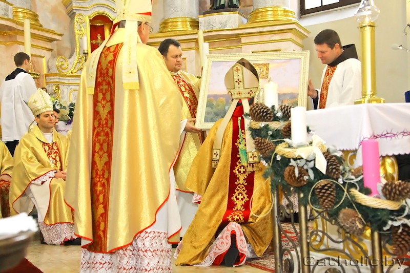 Арцыпастыру падарылі таксама карціну з напісаным Нацыянальным санктуарыем Маці Божай Будслаўскай. Сваю пашану і любоў да Маці Божай арцыбіскуп выказаў, стаўшы на калені і пацалаваўшы выяву гэтай святыні, у якой маліўся шмат разоў. Наш Народны Нунцый Арцыбіскуп Тадэвуш Кандрусевіч у сваім развітальным слове з гонарам адзначыў: «Вы ўвайшлі ў гісторыю нашага народа! Вы наш народны Нунцый!»