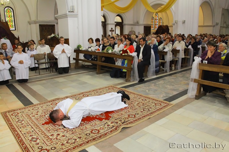 Гэта Ты, Пётр. Хочаш быць тут Падлогаю, «Пішучы гэтыя словы, — узгадвае ў сваёй кнізе "Дар і таямніца", з якой і прыведзены цытаты вышэй, Ян Павел ІІ, — думаў як пра Пятра, так і пра ўсю рэальнасць службовага святарства, імкнучыся падкрэсліць глыбіню значэння гэтай літургічнай прастрацыі. У такой паставе ляжання крыжам перад атрыманнем пасвячэння выяўляецца найглыбейшы сэнс святарскай духоўнасці: так, як Пётр, прыняць ва ўласным жыцці Крыж Хрыста і стаць “падлогаю” для братоў». У гэтым годзе ў Каталіцкім Касцёле ў Беларусі сем дыяканаў атрымалі прэзбітэрскае пасвячэнне і дзевяць семінарыстаў сталі дыяканамі. Вясна: 11 красавіка — брат Уладзімір Лапацкі OCist атрымаў дыяканскае пасвячэнне. У гэты ж дзень прэзбітэрскае пасвячэнне атрымаў дыякан Рамуальд Сяргей Касматовіч, францішканін.
