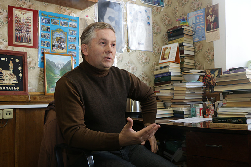 фота Віталія Палінеўскага «У хрысціянскай тэматыцы я ўжо не навічок, — працягвае Алег Вінярскі. — На Беларускім радыё ў свой час я агучваў тэксты чатырох Евангелляў на рускай мове па замове Беларускага Экзархату. Таксама я працаваў над шэрагам матэрыялаў хрысціянскай тэматыкі. Дзякуючы працы з Юрыем Гарулёвым і агучванню фільмаў для “Magnificat”, я назапасіў пэўны вопыт і ў тэме каталіцтва». «З прыходам Алега Вінярскага наша “Літаратурная старонка” атрымала новае дыханне, — адзначыў у каментарыі для Catholic.by кіраўнік беларускай рэдакцыі Ватыканскага радыё кс. Аляксандр Амяльчэня. — Гэта адчуваем і мы, як калектыў, і нашы пастаянныя слухачы, якія накіроўваюць водгукі, шматлікія і вельмі станоўчыя. Ведаю таксама, што многія пачалі слухаць “Літаратурную старонку”, калі яе пачаў весці менавіта Алег, — і святары, і вернікі, прычым не толькі католікі, і не заўсёды толькі веруючыя». «Мне здаецца, католікі любяць Вінярскага асабліва, таму што і яго голас, і манера падачы вельмі арганічна ўпісваюцца ў рэлігійны матэрыял — суіснуюць вельмі арганічна, — лічыць кс. Аляксандр. — Таму я, як кіраўнік беларускай рэдакцыі, вельмі цаню наша супрацоўніцтва. Спадзяюся, што і для Алега досвед працы з рэлігійным матэрыялам вельмі карысны».