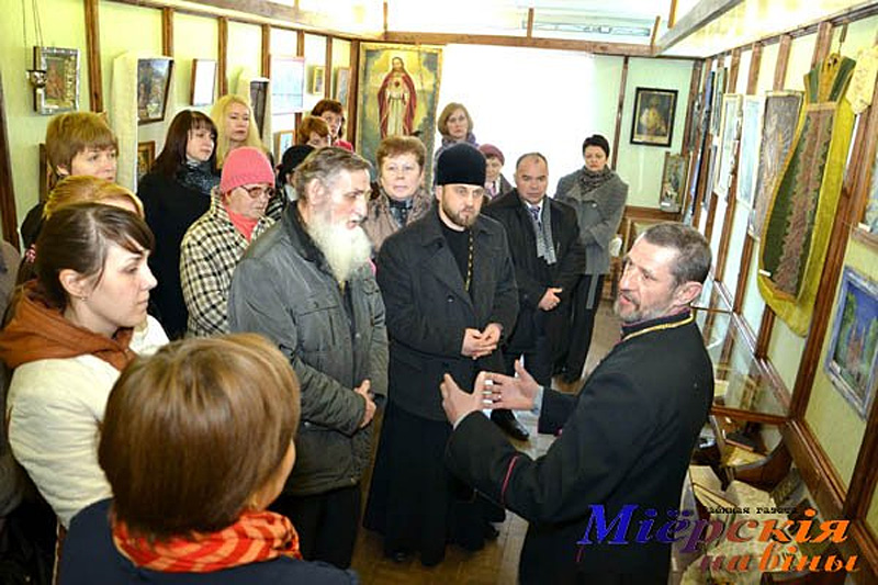 У раённым музеі маецца самаробны драўляны крыж 1887 года з Новага Пагоста. Людзі, якія перадалі яго на захаванне, расказвалі, што крыж зрабіў вучань школы, каб Бог дапамагаў яму ў вучобе. Гаворачы аб праваслаўнай веры, экскурсавод нагадала гісторыю іконы Божай Маці Адзігітрыі Смаленскай, якая знаходзіцца ў дзісенскай царкве. Святыня прыплыла ў горад па рацэ і ўратавала яго ад страшнага пажару. Прыгадалі імя святара Мікалая Рунды, які зрабіў значны ўнёсак у духоўнае жыццё Міёршчыны. Разам з праваслаўнымі іконамі занялі сваё месца на выставе творчыя работы міёрскіх умеліц: карціна Тамары Масленік з выявай царквы святога Мікалая Цудатворцы ў Чэрасах, вышываныя іконы Любові Юршэвіч.