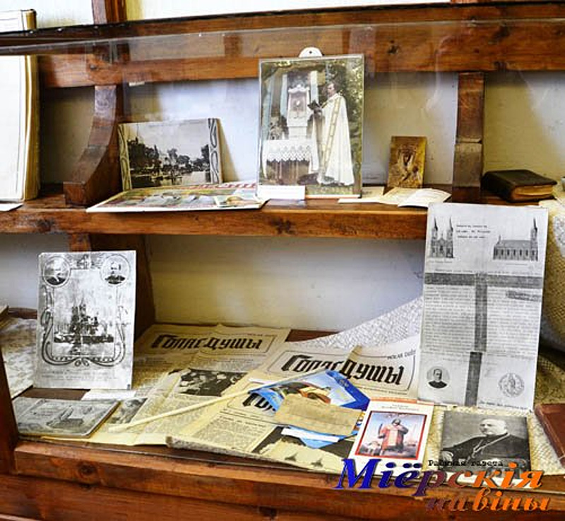 Натхняе мастакоў-аматараў і галоўная славутасць Міёр — касцёл Унебаўзяцца Найсвяцейшай Панны Марыі. Яго адлюстравалі Тамара Масленік і Міраслава Плотнікава. Каталіцкія абразы малявала Яніна Пушкель з Новага Пагоста, якая таксама шыла вопратку для ксяндзоў. На выставе можна ўбачыць фотаздымак кс. Уладзіслава Пятрайціса ў адзенні, пашытым Янінай Ігнатаўнай. З ліку каталіцкіх культавых прадметаў —скульптурныя кампазіцыі, малітоўнік 1871 года, крыжы, ружанец.
