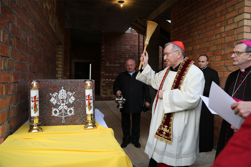 Першы камень новага будынка Апостальскай Нунцыятуры ў Мінску асвяціў у межах свайго візіту ў Беларусь Дзяржаўны Сакратар Папы Францішка кардынал П’етро Паралін 13 сакавіка 2015 г.
