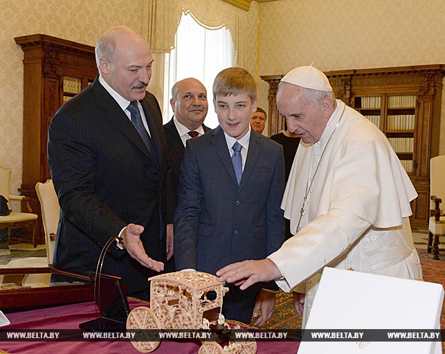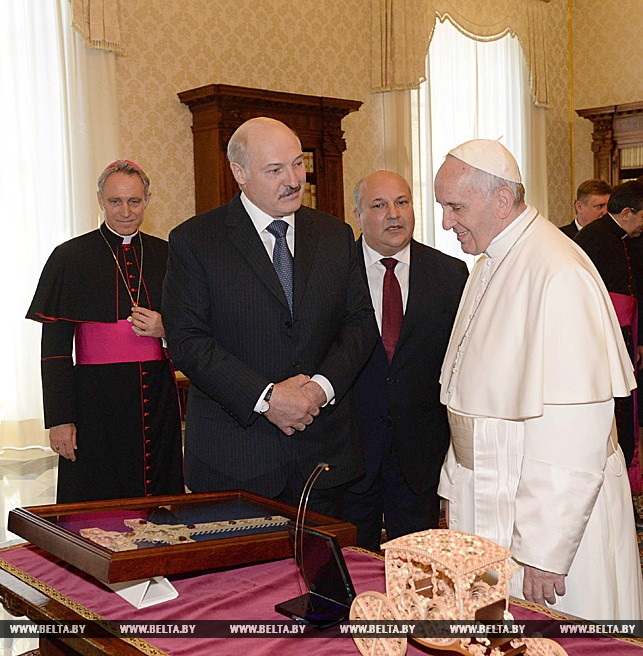 Прэзідэнт Беларусі Аляксандр Лукашэнка і Папа Рымскі Францішак падчас сустрэчы ў Апостальскім палацы ў Ватыкане 21 мая абмеркавалі развіццё адносін Беларусі з Рыма-Каталіцкім Касцёлам.