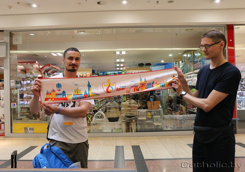 Побач з цэнтральным інфармацыйным офісам СДМ у чыгуначным вакзале ў Кракаве працуе і адмысловая крама, дзе пілігрымы могуць набыць сувеніры з СДМ для родных і блізкіх. Тут прадаюць майкі, нататнікі, кубкі і брэлокі, ёсць і камплекты заплечнікаў, у якім поўны набор «амуніцыі» СДМаўца. |
