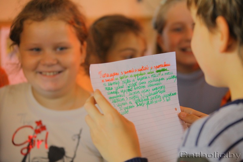 фота выкарыстана ў ілюстрацыйных мэтах «Аўтарам гэтых допісаў па 9, 10 і 11 гадоў, — гаворыць с. Нунэ Цітаян MSF, аўтар шэрагу дапаможнікаў па катэхетыцы і старшыня Катэхетычнай секцыі пры Канферэнцыі Каталіцкіх Біскупаў у Беларусі. — Гэта былі як “першакамунійныя” групы дзяцей, так і тыя групы, якія ўжо прынялі Святую Камунію. У канцы года я папрасіла іх пісьмова расказаць, чаму яны навучыліся за гэты час і ці былі карыснымі для іх мае заняткі». «Калі б у мяне не было веры ў Бога, я грашыў бы, не хадзіў бы ў касцёл, не слухаўся бацькоў і ні з кім бы не сябраваў. Вера ў Пана Езуса зрабіла мяне больш прыязным, справядлівым, шчырым, клапатлівым і шчодрым.