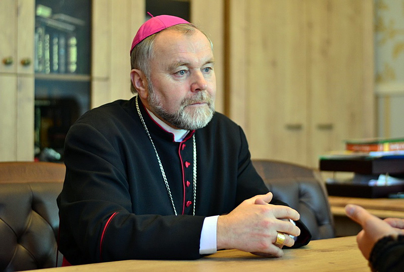 Пра адносіны з Праваслаўнай Царквой У маёй дыяцэзіі усё выглядае добра, нават вельмі добра. Заўсёды прасцей, калі мы разумеем ментальнасць адно аднаго. Я выхоўваўся ў камуністычным грамадстве. Патрыярх Кірыл падняў узровень навучання і фармацыі будучых праваслаўных духоўнікаў. Не ўсюды, але ў многіх месцах кантакты з праваслаўнымі епіскапамі цудоўныя. Зараз ідуць рамонтныя працы ў нашай катэдры і курыі, і ад праваслаўнага епіскапа я атрымаў у катэдру прыгожую фігуру Маці Божай у плашчы заступніцы. Кантакты і дыялог залежаць ад абодвух бакоў».