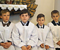 24 красавіка ў салезіянскай парафіі ў Смаргоні стала на чатыры міністранты больш. Склалі абяцанні, атрымалі благаслаўленне і прынялі комжы Уладзіслаў Арцёменка, Вадзім Буйноўскі, Антон Жамойда і Антон Субко.