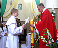 24 мая, ва ўрачыстасць Спаслання Духа Святога, восем дзяцей парафіі Святых Анёлаў Ахоўнікаў у Раготне (Гродзенская дыяцэзія) першы раз у жыцці прынялі святую Камунію. Да гэтай падзеі дзеці рыхтаваліся на працягу двух гадоў праз удзел у катэхезах, нядзельных Імшах і іншых малітоўных сустрэчах.На пачатку літургіі пробашч кс. Віктар Захарэўскі прывітаў дзяцей і бацькоў пры ўваходзе ў касцёл і заахвоціў дзяцей папрасіць благаслаўлення ў бацькоў.