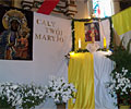 На плошчы мястэчка рэліквіі чакалі вернікі з крыжам і харугвамі на чале са сваім пробашчам ксяндзом Янам Рэйшалем. Пасля ўшанавання рэліквій пробашч парафіі ўрачыста ўнёс іх у касцёл і змясціў на падрыхтаваным месцы. Святар заахвоціў вернікаў давяраць свае просьбы і клопаты бл. Яну Паўлу II. Як інфармуе сайт Гродзенскай дыяцэзіі, падчас святой Імшы ксёндз Ян Рэйшаль звярнуў увагу на вялікі аўтарытэт Яна Паўла II, які з’яўляецца прыкладам для наследавання на шляху да святасці ў штодзённым жыцці. (AG) |