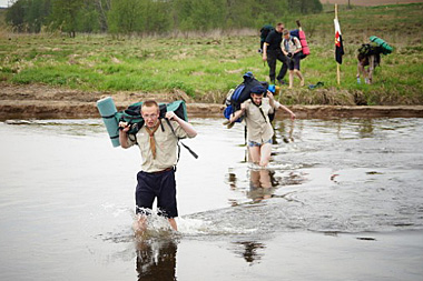 Вандроўнікі (старэйшыя скаўты) належаць да парафіяльных груп, якія практыкуюць педагогіку Федэрацыі еўрапейскага скаўтынгу. Традыцыя такіх пілігрымак на Беларусі пачалася ў 2010 годзе, калі вандроўнікі (старэйшыя скаўты) вырушылі ў Росіцу. У 2012 годзе пілігрымавалі ў Вішнева, апошняе месца працы а. Уладзіслава Чарняўскага. Шлях на Гудагай таксама быў абраны не выпадкова. І пачалося падарожжа святой Імшой у прыгожым касцёле ў Солах, ў жупранскім касцёле адбылося маёвае набажэнства, ахвяраванні на будаўніцтва якога збіраў Францішак Багушэвіч (дарэчы, пахаваны ён на касцёльных могілках, і ў касцёле захавалася лава, на якой ён звычайна сядзеў падчас св. Імшы). У гэтым годзе нацыянальная пілігрымка сабрала вандроўнікаў з розных парафій Беларусі, а менавіта: Мінска, Гомеля, Гродна, Віцебска, Барысава, Паставаў, Лынтупаў. Таксама да нас далучыліся вандроўнікі са Львова і Золачава (Украіна), каб разам памаліцца і падзяліцца сваім вопытам. Яны прыехалі разам са сваім душпастырам грэка-каталіцкім дыяканам Кіпрыянам з ордэна айцоў базыльянаў. Цікавым госцем для вандроўнікаў стаў Б’ёрн Ларсан са Швецыі, які прыехаў, каб пераняць досвед развіцця каталіцкага скаўтынгу ў Беларусі, бо ў Швецыі на сённяшні дзень яшчэ няма каталіцкіх скаўтаў. Гістарычнай тэмай сёлетняй пілігрымкі было паўстанне Кастуся Каліноўскага. У гэтым годзе мы адзначаем 150-годдзе з пачатку паўстання. Кожная група вандроўнікаў рыхтавала апісанне пэўнага этапу жыцця Каліноўскага і распавядала яго падчас вячэрняга вогнішча. Вогнішча для скаўтаў — месца радасці і смеху, маладыя людзі рыхтуюць сцэнкі, спяваюць гуляюць у розныя гульні. Падчас пілігрымак да вогнішча запрашаюць жыхароў бліжэйшых вёсак. Яно нават мае адмысловую назву — евангелізацыйнае вогнішча. Моладзь смяецца, спявае, моліцца і робіць гэта натуральна, без ужывання алкаголю. Удзел у падобнай пілігрымцы дае магчымасць духоўна ўзбагаціцца праз супольную малітву, разважанне Божага слова. Адметнасцю скаўцкай пілігрымкі з’яўляецца так званы «вандроўніцкі» стыль: вялікі заплечнік з усімі неабходнымі рэчамі кожны нясе сам, ежа рыхтуецца выключна на вогнішчы, начлег у намётах, не зважаючы на надвор’е. Прычым усё гэта адбываецца ў вельмі цёплай братэрскай атмасферы. Ідзем групамі па 7-8 чалавек, кожная група можа выбіраць свой маршрут, галоўнае — быць у вызначаным месцы ў канкрэтны час. Удзельнікам такой пілігрымкі можа стаць кожны, таму запрашаем на наступны год ўсіх жадаючых. За падрабязнай інфармацыяй пра дзейнасць скаўтаў на Беларусі можна звяртацца па тэлефоне: +375291082382, Павел Граковіч Павел Граковіч