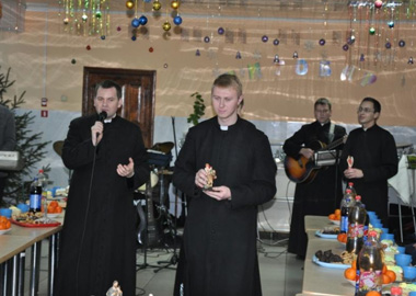 На пачатку семінарысты пазнаёміліся з дзецьмі і падзяліліся аплаткай, нагадваючы адзін аднаму аб айцоўскай любові Бога да кожнага. Таксама яны расказалі хлопчыкам і дзяўчынкам аб Божым Нараджэнні, якое змяніла жыццё кожнага чалавека. Cупольны спеў калядак з музычнай групай “AVE” даў магчымасць адчуць дух сямейнага перажывання Божага Нараджэння, а дзяленне аплаткай і салодкі стол нагадалі сямейную атмасферу вігілійнага вечара.
