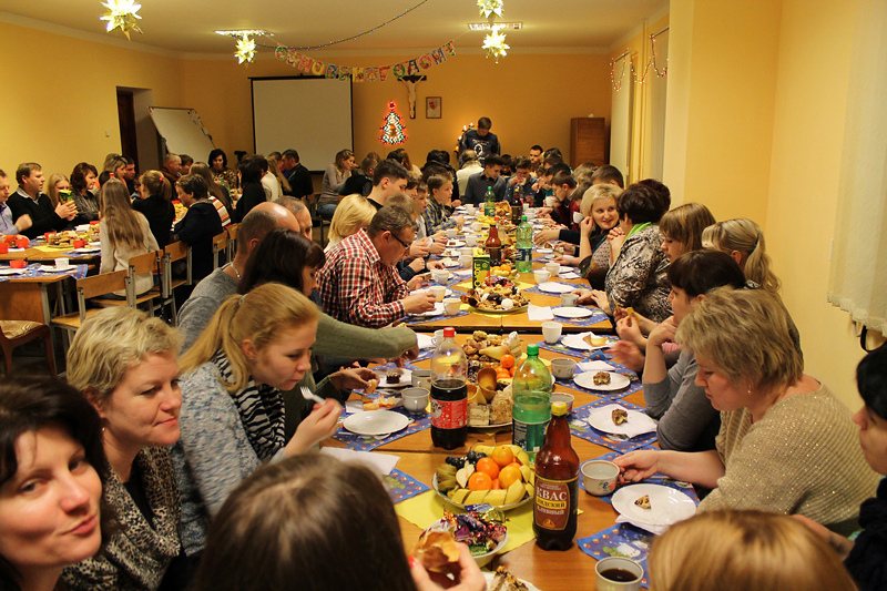 Усё распачалося супольнай вечаровай малітвай і Эўхарыстыяй у парафіяльнай святыні, падчас якой дзеці і іх бацькі прасілі аб спакоі, еднасці і радасці ў сваіх сем’ях. Пасля ўрачыстага благаслаўлення прысутныя сабраліся ў катэхетычным пакоі і падзяліліся аплаткай, а таксама склалі адзін аднаму святочныя віншаванні. Наступнай часткай сустрэчы сталі рознага кшталту забавы і конкурсы з мэтай зацікавіць не толькі дзяцей, але і іх бацькоў. Уся літургічная служба і ўдзельнікі парафіяльнага хору атрымалі смачныя падарункі як падзяку за ўпрыгожванне літургіі на працягу ўсяго года.