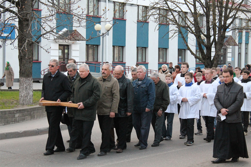 А тыдзень таму, 20 сакавіка, парафія перажывала набажэнства Крыжовага шляху вуліцамі горада. Па традыцыі парафіяне змаглі не толькі прыняць удзел у набажэнстве, але і засведчыць сваю веру праз чынны ўдзел у малітве.