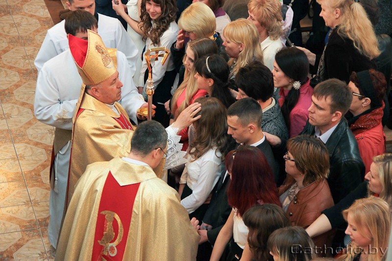 На завяршэнне святой Імшы біскуп Аляксандр Кашкевіч заклікаў маладых людзей, якія прынялі сакрамэнт хрысціянскай сталасці, кожны дзень даваць сведчанне сваёй веры, не саромецца прызнавацца ў прыналежнасці да Хрыста і Яго Касцёла ў сваіх месцах навукі, працы і ў кожным іншым месцы.