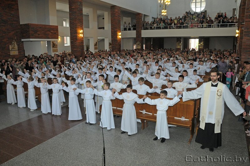 Святую Камунію ўпершыню прынялі ў гэты дзень каля 200 дзяцей. Звяртаючыся да дзяцей і іх бацькоў, іерарх адзначыў, што дзеці – гэта «вясна Касцёла». Па словах біскупа, вясна заўсёды нясе надзею і радасць; і такая радасць у гэты дзень заўважалася на тварах дзяцей і бацькоў. Іерарх звярнуў увагу, што гэтая радасць «павінна ператварыцца ў евангельскі чын», а «прыклад добрага евангельскага чыну павінны даць сваім дзецям бацькі, бо гэта абавязак кожнага бацькі і маці». Дзецям іерарх пажадаў, каб Хрыстус быў Госцем іх душы не толькі ў гэты памятны дзень прыняцця Яго першы раз, але і каб заўсёды ў іх сэрцах было належнае месца для Езуса Хрыста, які захацеў застацца ў Касцёле ў Эўхарыстыі.