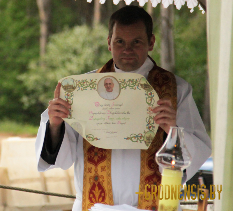 Таксама, як паведамляе grodnensis.by, падчас Імшы кс. Павел Салабуда, пробашч парафіі, уручыў ліст падзякі ад Святога Айца для Юрыя Багушэвіча, дзякуючы старанням якога была пабудавана капліца.