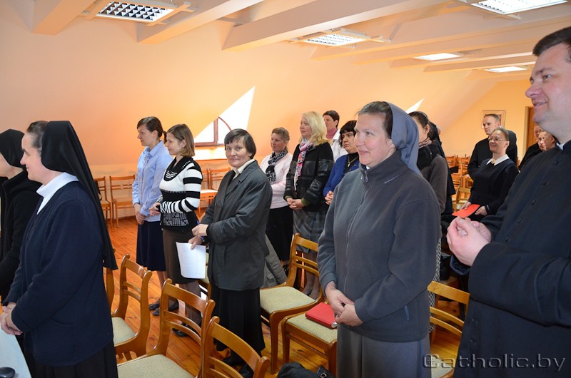 На сустрэчу прыбылі каля 50 святароў, сясцёр законных і свецкіх катэхетаў, якія штодзень служаць сярод дзяцей і моладзі, займаючыся іх навучаннем і рэлігійным выхаваннем. Сабраных прывітаў а. доктар Андрэй Шчупал CSsR – дырэктар аддзела навучання і выхавання Гродзенскай курыі. У сваім слове святар адзначыў, наколькі вялікая сёння роля катэхета, галоўным заданнем якога з’яўляецца весці чалавека да сустрэчы з Богам.