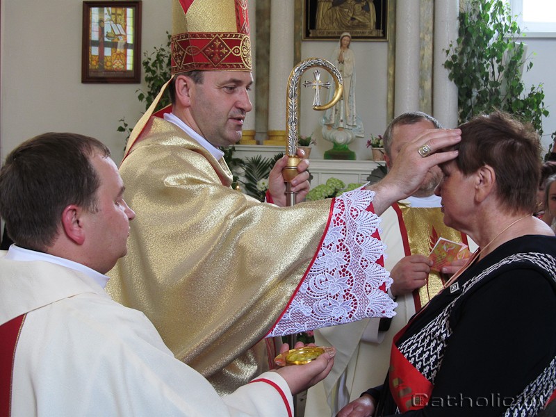У адноўленым касцёле, упрыгожаным мноствам кветак, бачны быў у гэты дзень найвялікшы плён працы многіх пакаленняў вернікаў і самога пробашча: моладзь, якая прымала сакрамэнт канфірмацыі. Звяртаючыся да прымаючых сакрамэнт, біскуп Юзаф Станеўскі ў гаміліі прасіў іх не баяцца ўзяць адказнасць за Касцёл, бо гэты сакрамэнт чыніць іх сталымі хрысціянамі, што азначае, што яны павінны не толькі публічна вызнаваць веру, але і бараніць. Па словах іерарха, кожная кветка павінна даваць не толькі прыгажосць і водар, але і плён; кветка без паху – гэта як чалавек без цноты, таму біскуп прасіў ужо сталых католікаў даваць сведчанне Евангелля праз захаванне Божых запаведзяў і жыццё, поўнае хрысціянскай любові да бліжніх. Біскуп звярнуўся таксама да родных моладзі, якая прымала сакрамэнт канфірмацыі, і сведкаў, каб яны ў жэсце ўскладання рук на плечы кандыдатаў перадалі ім рэлігійную спадчыну свайго жыцця.