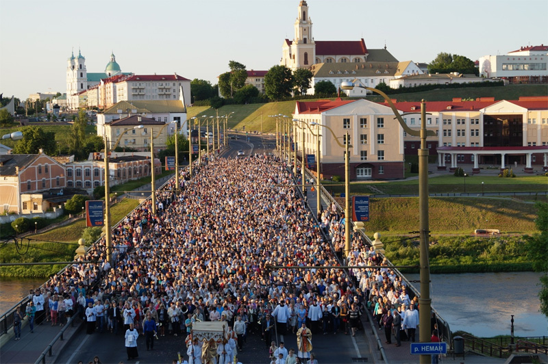 У гэты вечар на вуліцах Гродна была вялікая колькасць католікаў, што пажадалі ўшанаваць найбольшую таямніцу веры, якой з’яўляецца Эўхарыстыя — рэальная прысутнасць Хрыста ў хлебе і віне.