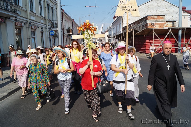 Вернікаў праводзіў у шлях біскуп Аляксандр Кашкевіч, які частку дарогі ішоў наперадзе пілігрымкі. Па горадзе разносіліся радасныя песні, якія спявала моладзь і якія, напэўна, былі таксама заахвочваннем для тых, хто яшчэ не рашыўся вырушыць у пілігрымку, баіцца кіламетраў, гарачага сонца ці дажджу.