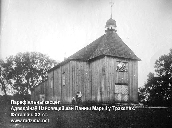 Асаблівай увагі заслугоўвае падзея 1656 г., звязаная з гэтым вядомым ласкамі абразом. Падчас польска-маскоўскай вайны касцёл быў спалены непрыяцельскім войскам. Вернікі знайшлі сярод попелу абраз Маці Божай, які не пашкодзіла полымя. Парафіяльная хроніка пацвярджае факт, што абраз знайшоў невідушчы чалавек, які пры гэтым атрымаў зрок. На новым пляцы была адбудавана святыня, і абраз зноў быў змешчаны ў галоўным алтары. Пашана да Маці Божай у гэтым абразе пастаянна ўзрастала. Аб гэтым гавораць і шматлікія ласкі, атрыманыя вернікамі пры ім. Народ Божы першы раз назваў Марыю на гэтым абразе Маці Божая Тракельская (Пані Тракельская). У 1738 г. зноў здарыўся пажар, і абраз зноў быў цудоўна ўратаваны ад агню.