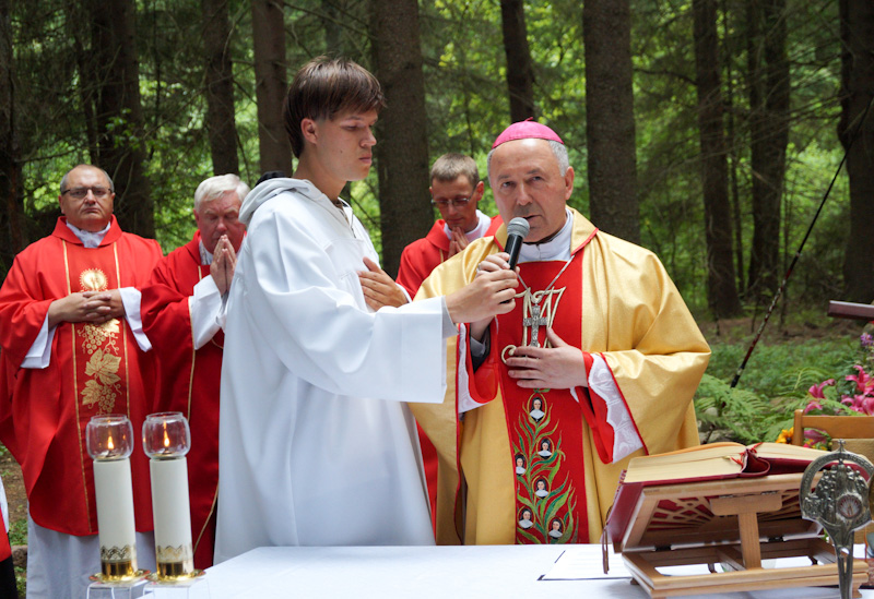 У гаміліі біскуп Аляксандр Кашкевіч назваў лес, які стаў нямым сведкам апошніх хвілін жыцця навагрудскіх мучаніц, месцам “страшным”, а адначасова “святым”. Іерарх адзначыў, што смерць назарэтанак была смерцю незвычайнай. “Сёстры склалі сваё жыццё як свядомую і дабравольную ахвяру, у жэсце гераічнай любові да Бога і бліжняга, — сказаў біскуп. — Таму для нас, якія сёння схіляем галовы перад веліччу іх учынку, гэты лес пад Навагрудкам з’яўляецца перадусім святым месцам — яго асвяціла мучаніцкая кроў, пралітая адважнымі законніцамі”.
