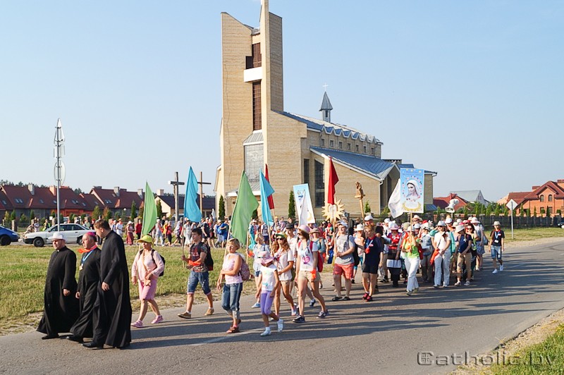 ![]() Пешая пілігрымка «Гродна-Рось», якая сёлета праходзіць пад дэвізам «Навярніся да Бога», распачалася Імшой, якую ўзначаліў біскуп Гродзенскі Аляксандр Кашкевіч. Іерарх заахвоціў усіх пілігрымаў прысвяціць час у дарозе Богу, каб адкрыцца такім чынам на дзеянне Божай ласкі.