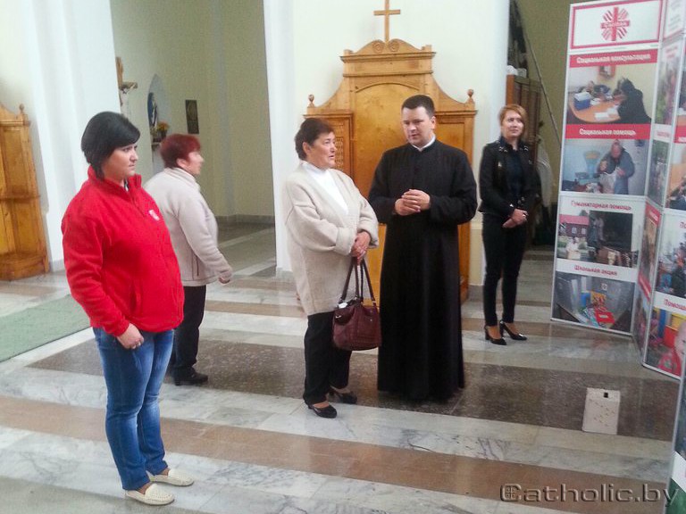 З дапамогай мабільнай выставы «Карытас», у якой адлюстраваны галоўныя праекты таварыства, парафіяне маглі азнаёміцца з дабрачыннай дзейнасцю «Карытас» у Гродзенскай дыяцэзіі.