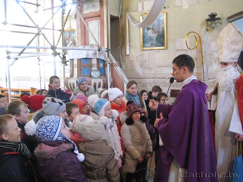 Прыемным момантам у гэты дзень стала для вернікаў прысутнасць святога Мікалая на Імшы. Дзеці атрымалі ад яго салодкія падарункі. |