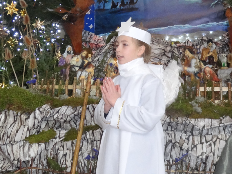 На пачатку ўрачыстасцяў увазе прысутных было прапанавана падрыхтаванае дзецьмі прадстаўленне аб нараджэнні Хрыста. У ім маленькія артысты распавялі аб Божым Сыне, які прыйшоў у свет у сям’і і яднае чалавечыя сэрцы, распальваючы іх любоўю да Бога і людзей.