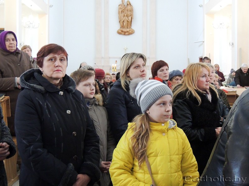 У час Вялікага посту вельмі важна ўсім сэрцам звяртацца да Бога і шукаць ласкі, дапамогі і выратавання менавіта ў Ім. Старэйшыя міністранты з парафіі Святой Сям'і ў Лідзе 11 сакавіка правялі чарговае набажэнства Крыжовага шляху, дзякуючы якому прысутныя маглі перажыць гэты духоўны вечар з усведамленнем таго, што Езус памёр таксама і за іх грахі. Тэмай разважанняў была выбрана міласэрнасць, таму што гэты год у Каталіцкім Касцёле з’яўляецца Годам Міласэрнасці. У сваіх разважаннях міністранты гаварылі аб важнасці таго, каб быць шчодрым, бо, дзелячы свой хлеб з адным чалавекам, мы ўжо змяняем наш свет. Вельмі часта, як адзначалася, нам не хапае спачування людзям, якія сапраўды маюць патрэбу ў дапамозе; і мы павінны маліцца за іх, таму што толькі Бог ніколі не пакіне чалавека ў цяжкім становішчы. Таксама хлопцы з літургічнай службы алтара разважалі на тэму адносін у сям’і. У цяперашні час, як гаварылася ў разважаннях, ёсць шмат няшчасных сем’яў, якія не хочуць прымаць дар Божы — пасланае ім дзіця, і такія сем’і маюць патрэбу ў Богу і ў Яго ласках. На заканчэнне Крыжовага шляху міністранты памаліліся праз заступніцтва святой сястры Фаўстыны, просячы міласэрнасці ў адносінах да іншых людзей. У сваім «Дзённіку» святая пісала: «О мой Езу, ператвары мяне ў Сябе, таму што Ты можашь зрабіць усё». Вікторыя Бурч, фота аўтара |
