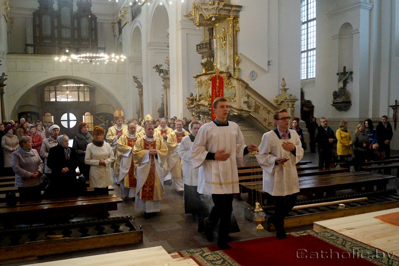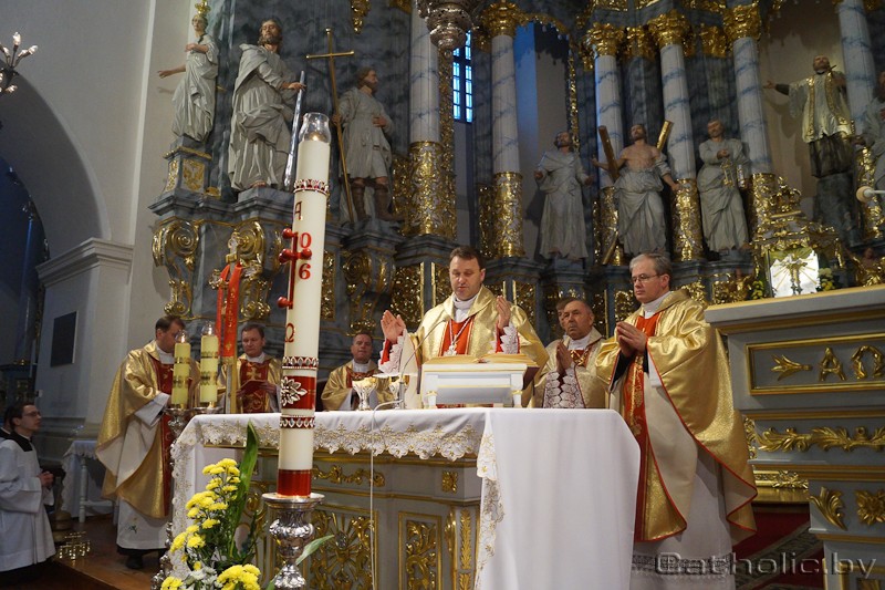 Урачыстае Te Deum laudamus спявалі вечарам 13 красавіка ў той самай святыні, дзе 25 гадоў таму было абвешчана, што Святы Айцец Ян Павел ІІ адрадзіў структуры Каталіцкага Касцёла ў Беларусі. Тады была ўсталявана Мінска-Магілёўская мітраполія, адроджана Пінская дыяцэзія і заснавана Гродзенская дыяцэзія.