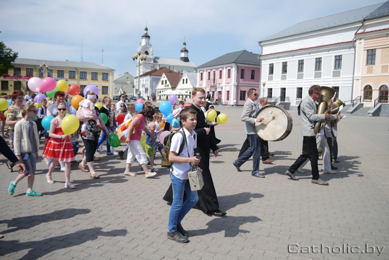 Пасля Імшы, благаслаўлення, якое ўдзяліў кс. Юрый, і сумеснай малітвы за сем’і Навагрудка і ўсёй Беларусі сем’і, якія прысутнічалі ў касцёле, разам з аркестрам вырушылі з плошчы Леніна да гарадскога парку, дзе адбылася асноўная частка святкавання. «Калі скажу сваякам з Польшчы, што ў Навагрудку адбыўся парад сем’яў, не павераць» Упершыню па Навагрудку крочыў парад сем’яў. У час крызісу сям’і гэта асабліва важна – паказаць, што ў грамадстве шмат нармальных сем’яў. Да сем’яў, якія крочылі са святыні, далучаліся таксама іншыя жыхары Навагрудка. «Калі скажу маім сваякам з Польшчы, што ў нашым Навагрудку адбыўся парад сем’яў, яны не павераць», — з захапленнем казала адна з парафіянак.