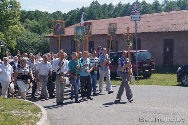 У гэты дзень раніцай у санктуарый вырушыла пешая пілігрымка з Гродна, у якой прынялі ўдзел бацькі сем’яў, іх жонкі і дзеці.