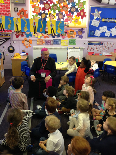 | У межах візіту ў Вялікабрытанію Мітрапаліт Тадэвуш Кандрусевіч наведаў пачатковую каталіцкую школу |