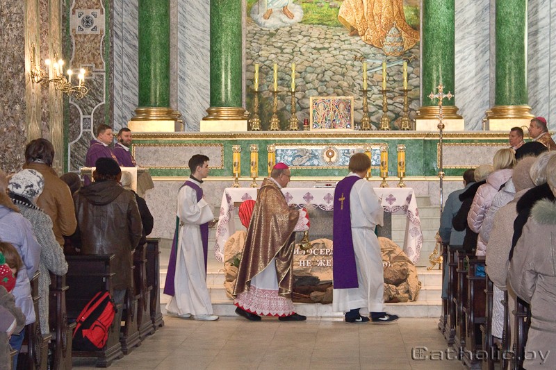 Святыня была напоўнена вернікамі. Iмша была на ўкраiнскай мове, а гамiлiю беларускi iерарх паводле рэкамэндацыi ардынарыя Кiеўска-Жытомiрскай дыяцэзii арцыбiскупа Пятра Мальчука прамовiў на рускай мове. Між іншым, сёння ў Кiеве дзейнічае восем каталіцкіх парафiй, i ў кожнай з iх ёсць Iмша на рускай мове; у касцёле св. Аляксандра ў нядзелю Iмша цэлебруецца тры разы на ўкраiнскай мове, два – на польскай, адзін – на англійскай i адзін – на рускай. У цэлым жа ў нядзелю ў Кiеве цэлебруецца каля 30 Iмшаў.
