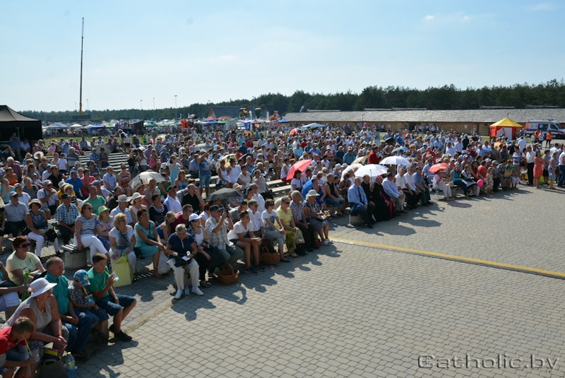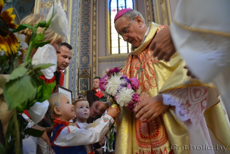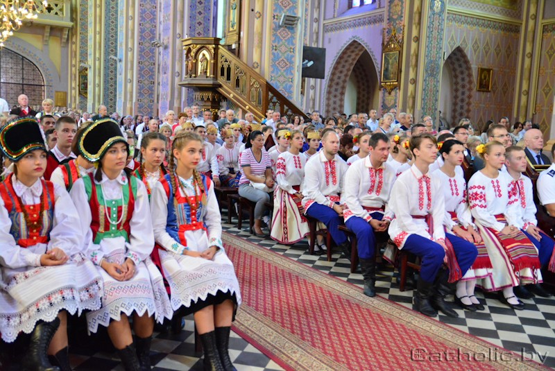 У велізарнай святыні сабралося вельмі шмат вернікаў. Прысутнічаў таксама гурт з Гродна, які Мітрапаліт Тадэвуш Кандрусевіч прывітаў на беларускай мове.