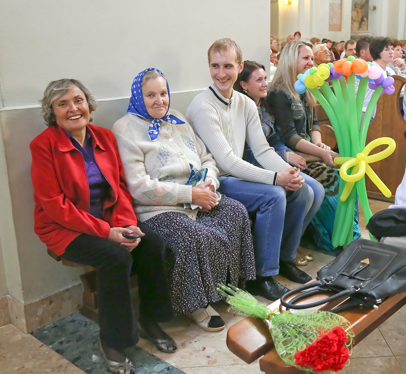 Яшчэ перад святою Імшою звяртаю ўвагу на жанчыну з кветкамі, якая аказваецца цёцяй кс. Рамана Сушы. Яна сядзіць разам са стрыечнаю бабуляю новага святара Суша Галінай Мікалаеўнай з в. Нарач. Цёця, Святлана Суша, апавядае: