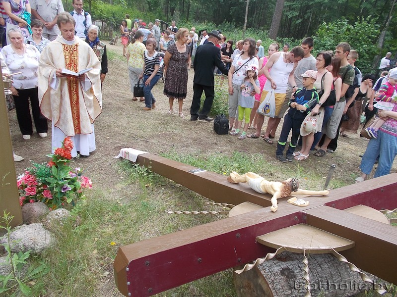 У святой Імшы, якая пачалася, як заўсёды, у 11 гадзін, прынялі ўдзел каля 200 вернікаў розных узростаў. Пасля адбылося ўрачыстае асвячэнне і ўшанаванне новага прыдарожнага крыжа. Сабраныя з вялікай пашанай і павагай ушанавалі святы знак адкуплення.