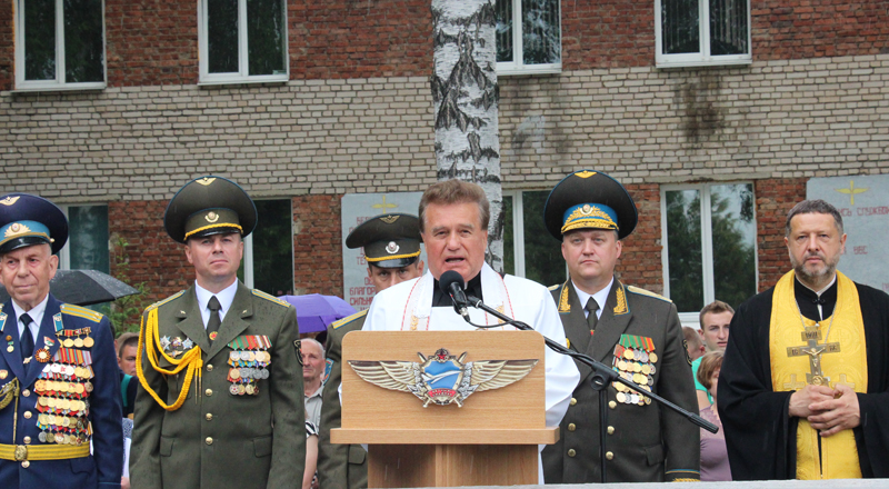 У сваёй прамове да прызыўнікоў святар падкрэсліў: "Паважаныя прызыўнікі, сыны Беларусі! Сёння, падчас прыняцця прысягі, вы ўпершыню адчулі вялікую адказнасць за Бацькаўшчыну перад сваімі блізкімі, перад сваім народам. Вы сапраўды сталі дарослымі. І маё пажаданне, каб гэтая прысяга была складзена вамі не толькі на два гады службы ў арміі, але каб і на ўсё жыццё вы заставаліся вернымі сынамі сваёй Радзімы, бераглі і захоўвалі сваю зямлю."
